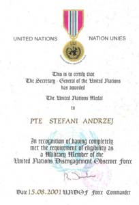 Podczas pobytu w Syrii i Izraelu był zastępcą dowódcy ochrony, ochraniał dygnitarzy z ONZ podczas ich wizyt w Libanie, Izraelu, Egipcie. Był odpowiedzialny za przeszkolenie żołnierzy w dziedzinie walki wręcz i technik przetrwania w terenie.